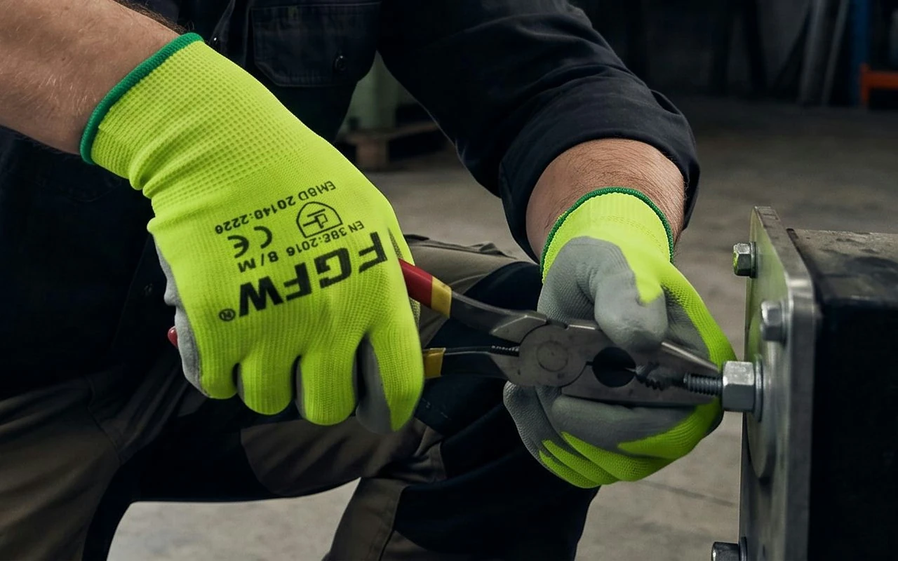 القماش الفلوري الساطع يجعل وضعية اليد واضحة في الأماكن الخافتة الإضاءة. يمكن للفرق ملاحظة الإشارات فورًا، مما يساعد على تجنب الأخطاء الخطرة قرب الآلات.