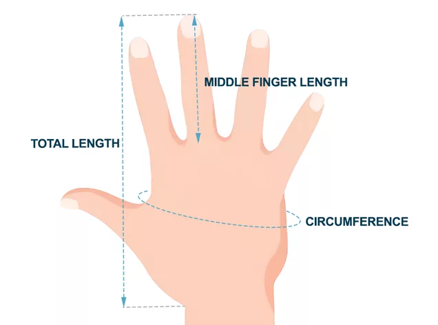 - 2. قم بالقياس من أسفل راحة يدك حتى طرف إصبعك الأوسط.