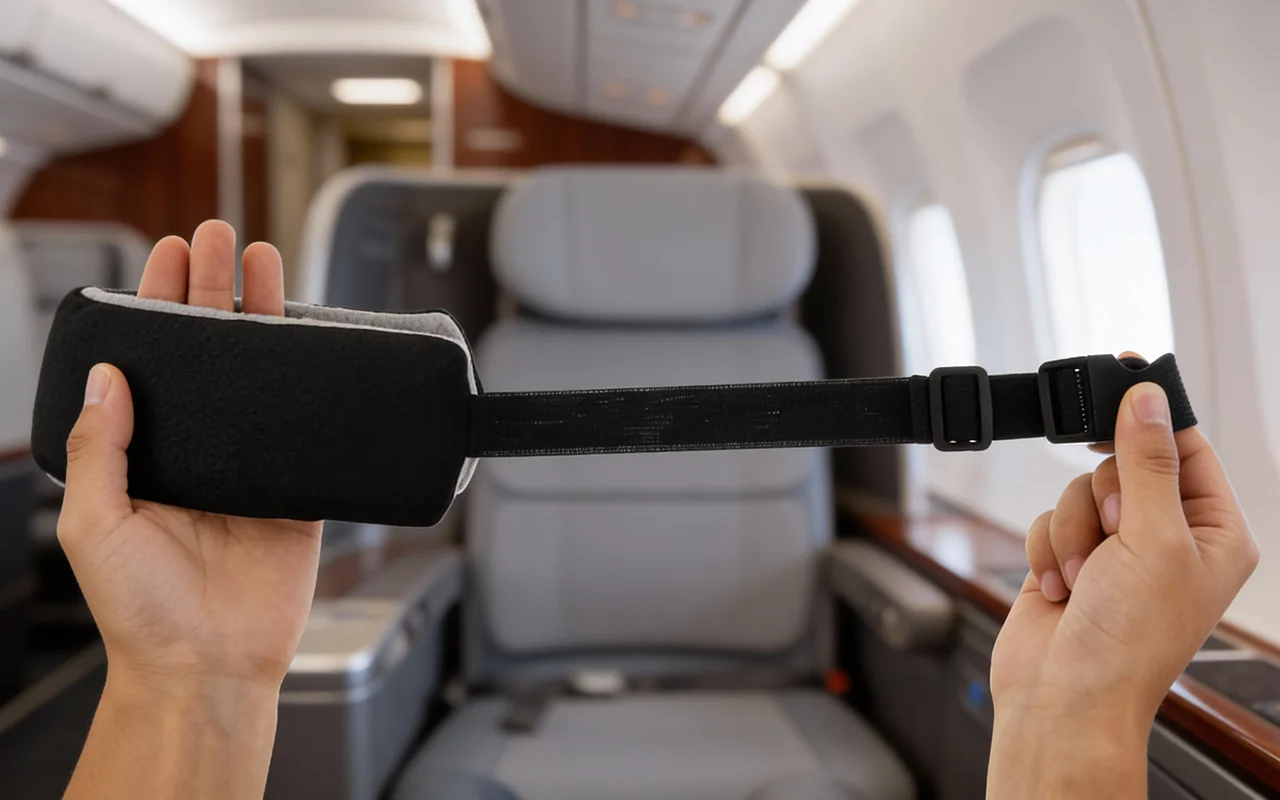 العصابة ناعمة ولطيفة جدًا على بشرتي. أحب كيف تبقى ثابتة وتحافظ على رأسي من الحركة حتى عندما أغفو. فكرة رائعة للسفر.