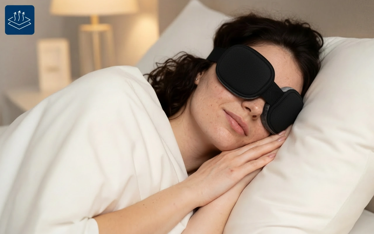 هذا القناع المعتم خفيف جدًا لكنه يبقى في مكانه. يعجبني أنه لا يضغط على عيني ولا يجعلني أتعرق ليلًا.