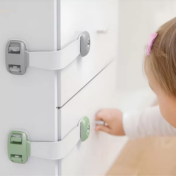 قفل أمان أورتركس يبقي الأطفال الفضوليين بعيدين عن الخطر. التصميم المرن يعمل عبر المراحيض، الثلاجات، الخزائن، والأدراج. لا داعي للقلق بشأن العلامات أو الزوايا المخدوشة.
