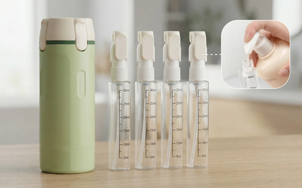 لم أعد أضطر للبحث في حقيبتي عن زجاجات صغيرة. هذا يبقي كل أغراضي في مكان واحد. إعادة التعبئة أيضًا سهلة جدًا.