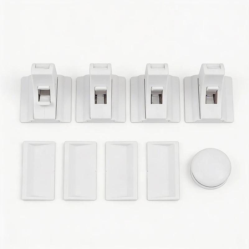 هذه المزالج المغناطيسية منحتني راحة بال مع طفل بدأ لتوه بالمشي في المنزل. التركيب كان بسيطًا، ودليل المحاذاة ساعد، وكل باب يُغلق بنقرة آمنة.