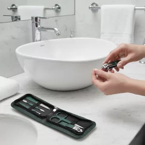 أحب تصفيف أظافري وهذا الطقم جعله بسيط جداً. كل أداة تناسب مكانها في الحافظة فلا شيء يضيع.