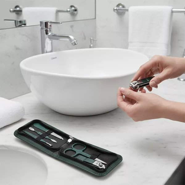 حافظة مفيدة جداً للحصول على أظافر مرتبة. أحب ملمس الفولاذ المقاوم للصدأ وسهولة جمع كل شيء معاً.