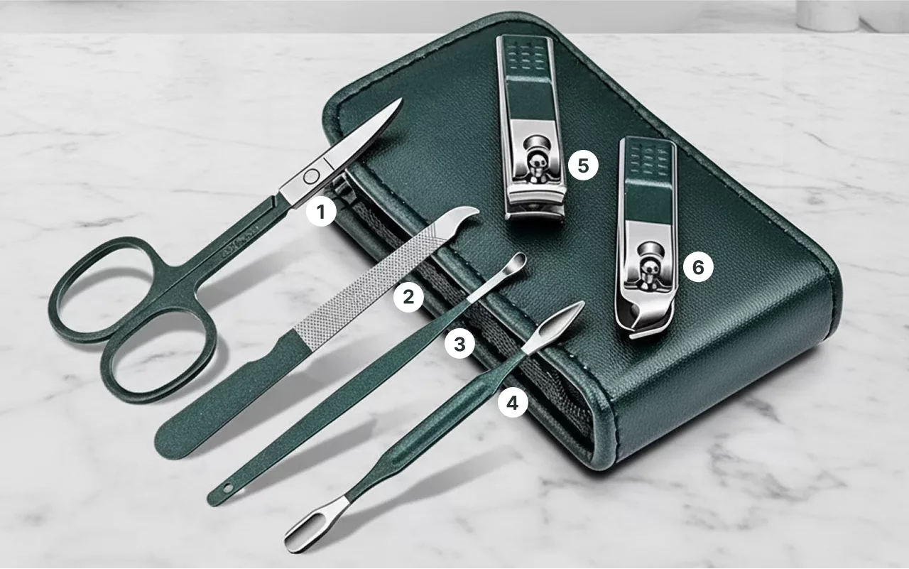 ستة أدوات مختلفة تتعامل مع كل مهمة عناية بسهولة. لا يبقى أي مشكل في الأظافر دون حل باستخدام هذه المجموعة المدمجة.