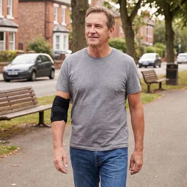 أنا أعمل في الخارج كثيرًا، لذا مرفقي يؤلمني. هذا الرباط يبقيني مرتاحًا طوال اليوم وأنسى أنني أرتديه.