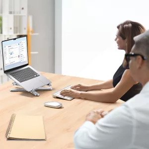 يختفي ألم الرقبة عندما تكون شاشتك في مستوى العين. حوامل أورتركس ترفع الأجهزة لأفضل وضعية جلوس. المعدن القوي يبقي كل شيء مستقرًا أثناء العمل أو الدراسة. فتحات التهوية تمنع ارتفاع الحرارة وتحمي أجهزتك. خذه معك في أي مكان، فهو يُطوى بسرعة وسهولة.