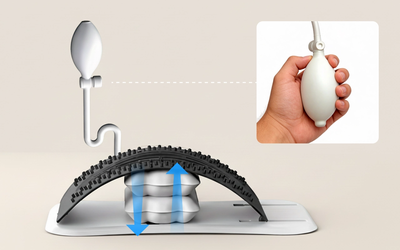 يمكن أن يتراكم التوتر اليومي الناتج عن الجلوس ووضعية الجسم السيئة ليتحوّل إلى انزعاج مستمر. تم تصميم جهاز تمديد الظهر من لدعم العمود الفقري بلطف مع تشجيع إزالة الضغط عنه بشكل طبيعي. يساعد الاستخدام المنتظم على تقليل التصلب وتخفيف الضغط بدون مواعيد طبية أو أدوية.