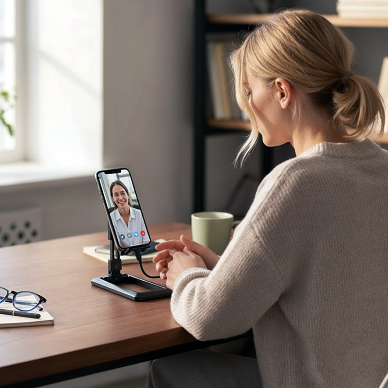 قراءة الرسائل الإلكترونية أو مشاهدة مقاطع الفيديو تصبح سهلة كل يوم. يتم تقليل إجهاد الرقبة بسرعة حتى تشعر براحة لفترة أطول. التصميم الخفيف والمدمج يسهل نقله بين الغرف. القاعدة القوية تبقي الأجهزة بأمان على أي سطح.