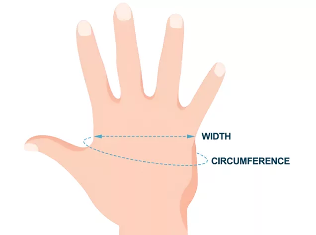 | SIZE | PALM WIDTH | PALM CIRCUMFERENCE | ||