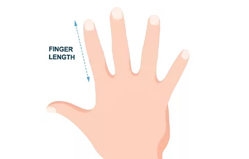 - 1. استخدم مسطرة لقياس المسافة من قاعدة الإصبع حيث يلتقي بالراحة حتى طرفه.