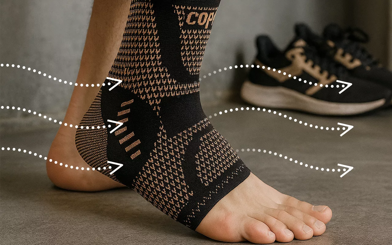 القماش الممزوج بالنحاس يبقي قدميك جافة ومنتعشة طوال اليوم. يمنع الروائح غير المرغوبة ويسمح للبشرة بالتنفس بسهولة.