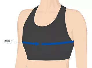 - 2. للحصول على قياس الصدر، لفي شريط القياس حول أكثر جزء ممتليء من صدرك. احرصي على أن يكون شريط القياس أفقياً. امسكيه بثبات دون شد.