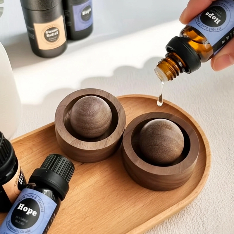 أحب مدى سهولة هذا الكُرَة الخشبية في تعطير غرفتي. فقط بضع قطرات ويبقى الجو منعشاً طوال اليوم. يبدو جميلاً على مكتبي!