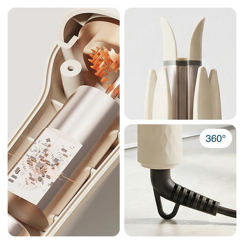 الشعر ينزلق بسلاسة دون أن يتشابك أو يُسحب. إعادة الضبط التلقائي تضمن استخداماً آمناً وخالياً من التوتر في كل مرة.