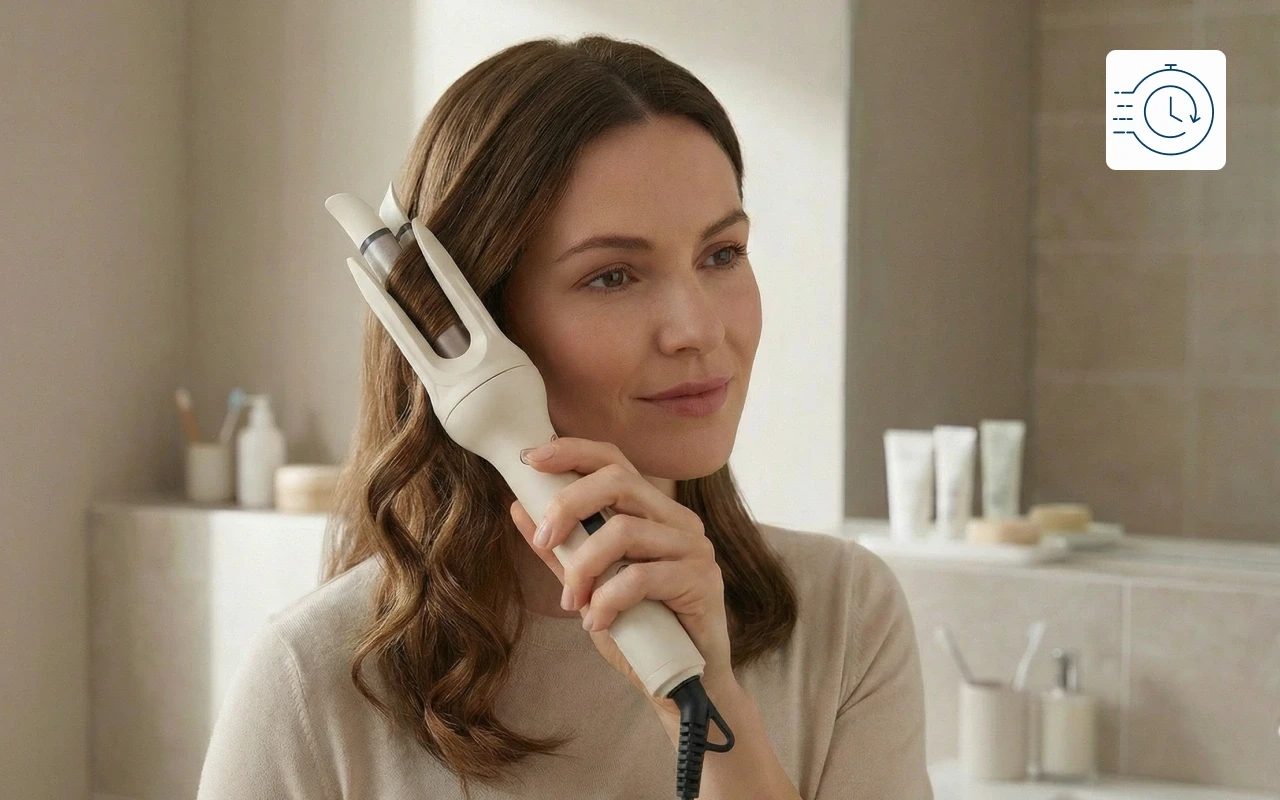 حوّلي روتينكِ اليومي إلى خطوات بسيطة وسهلة. استمتعي بتموجات حريرية وجميلة دون تلف أو تشابك الشعر. جهاز تجعيد الشعر الأوتوماتيكي من أورتي ريكس يمنحكِ تصفيفاً احترافياً في المنزل. اختاري الإطلالة المثالية في أقل من دقيقة. اشعري بالثقة كل يوم مع لمعة صحية.