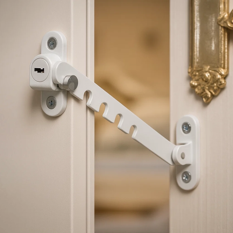 أتمنى لو وجدت هذا القفل من قبل! يثبت بإحكام ويمنع أصابع الصغار من الإصابة. التنظيف حوله سهل ولا يعيق الحركة أبداً.