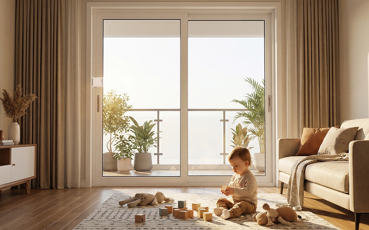 يبقى الأطفال محميين أينما لعبوا داخل المنزل. يمنع الفتحات الخطرة في الأبواب أو النوافذ المنزلقة بسهولة.