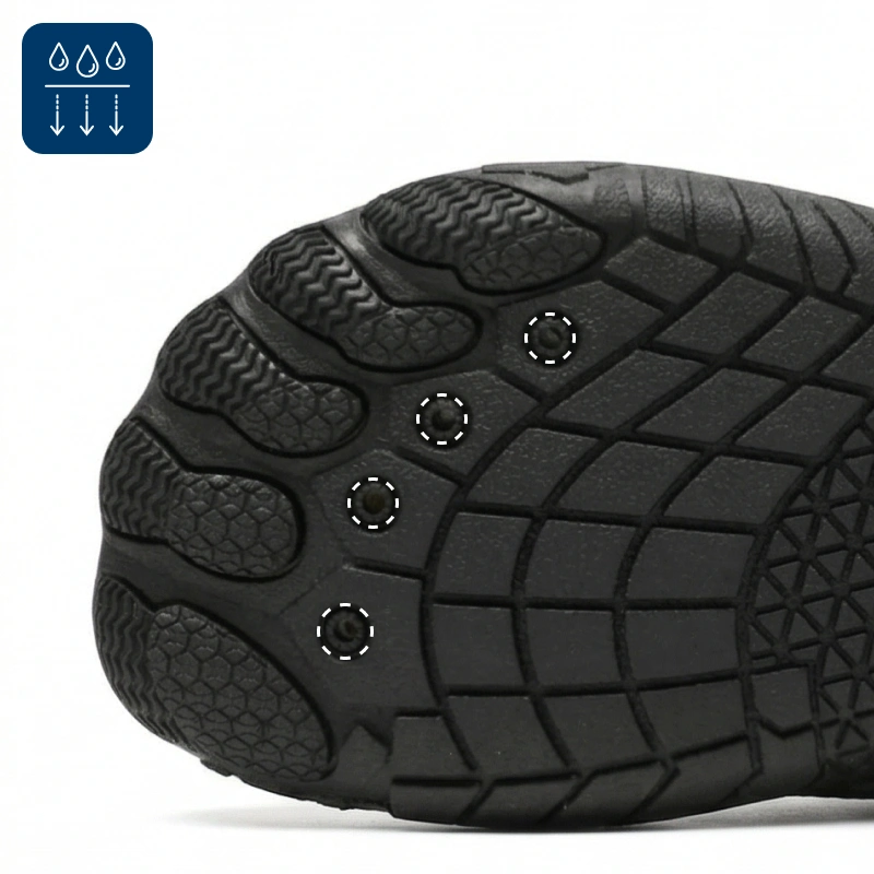 نعل فريد بخمس أصابع يمنحك ثباتًا على الأرض المبللة أو غير المستوية. تبقى متوازنًا أثناء الرياضة، وعلى الشواطئ أو ضفاف الأنهار.