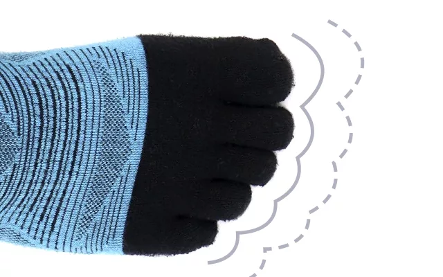 هذه الجوارب الخاصة للإبهام مريحة جداً! ارتديتها في جولات المشي الصباحية والفصل بين الأصابع فعلاً يصنع فرقاً. قدماي تبقيان جافتين طوال اليوم.