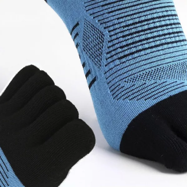 هذه الجوارب الخاصة للإبهام مريحة جداً! ارتديتها في جولات المشي الصباحية والفصل بين الأصابع فعلاً يصنع فرقاً. قدماي تبقيان جافتين طوال اليوم.