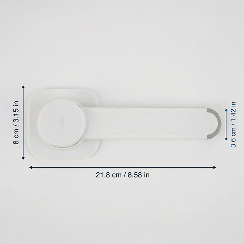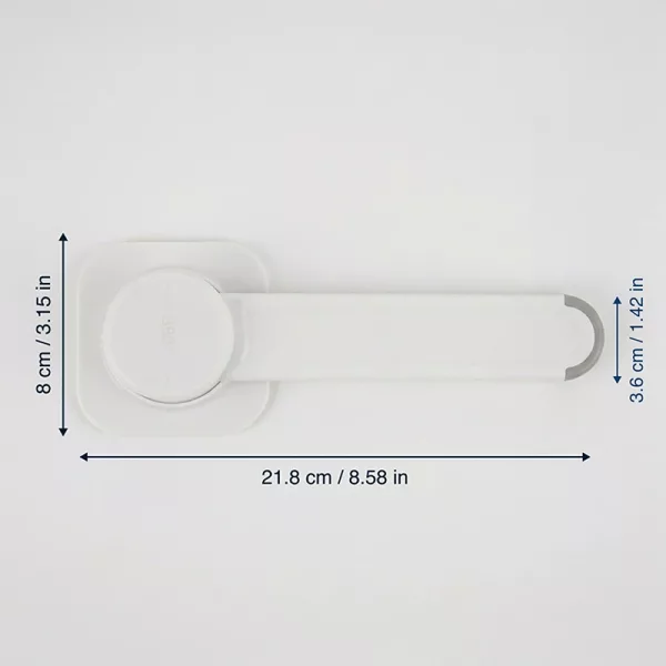 سعيد جداً بمدى فاعلية هذا القفل في حماية طفلي. يفتح بسرعة للكبار لكنه قوي بحيث لا يستطيع طفلي تحريكه.