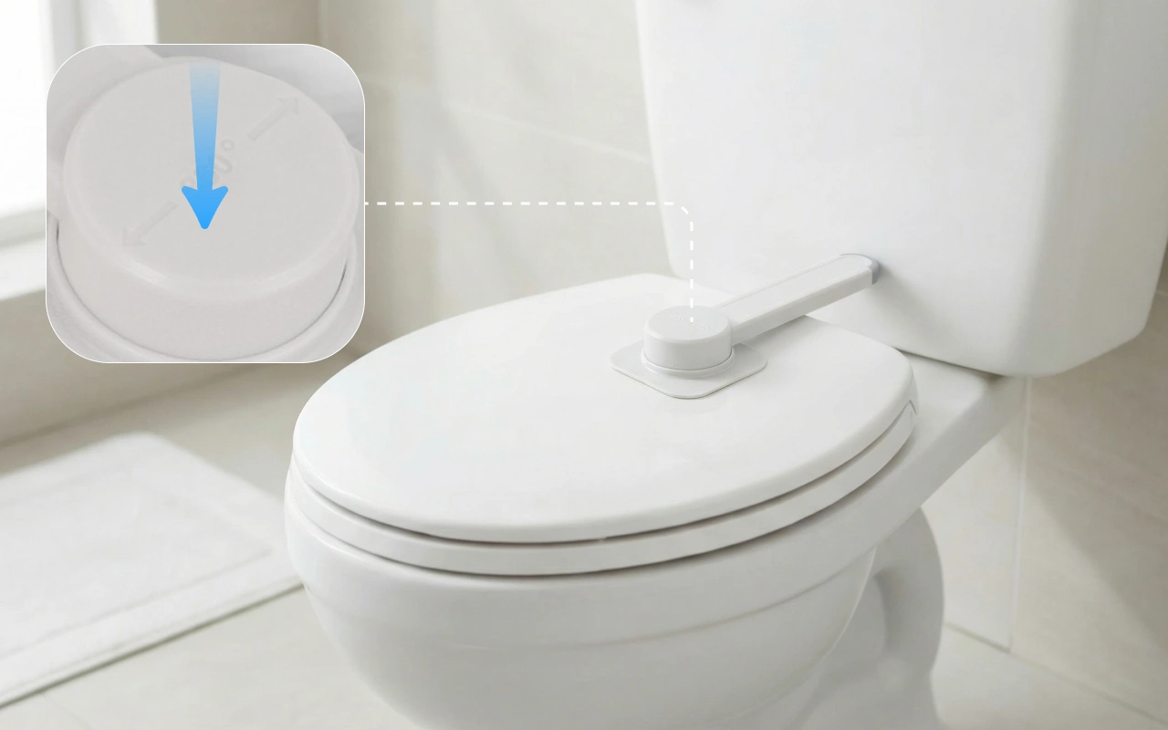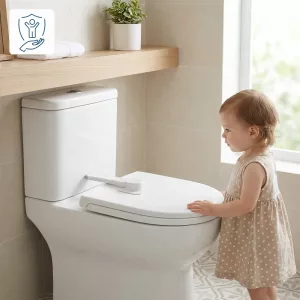 قفل المقعد يبدو بسيطاً، لكنه قوي فعلاً. تفاجأت بجودته! يسهل تنظيف الحمام أيضاً.