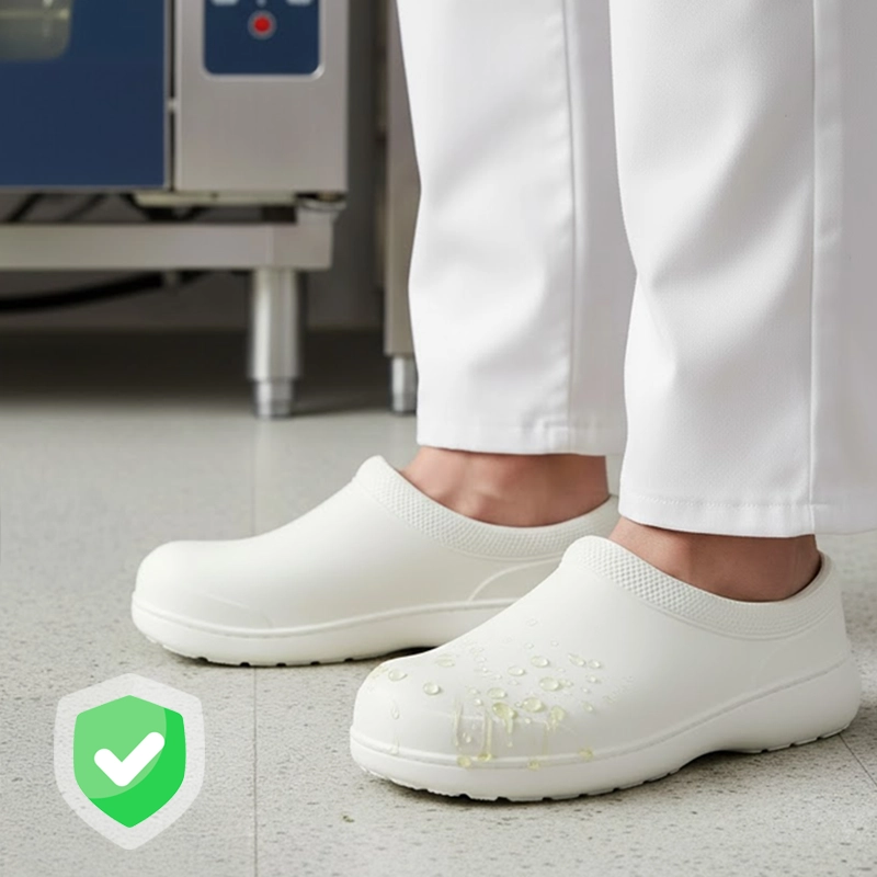 أحب كم أن هذه القباقيب خفيفة! قدماي لم تعد تؤلمني بعد العمل. التنظيف سهل جداً بمسحة سريعة فقط. لا مزيد من الانزلاق.