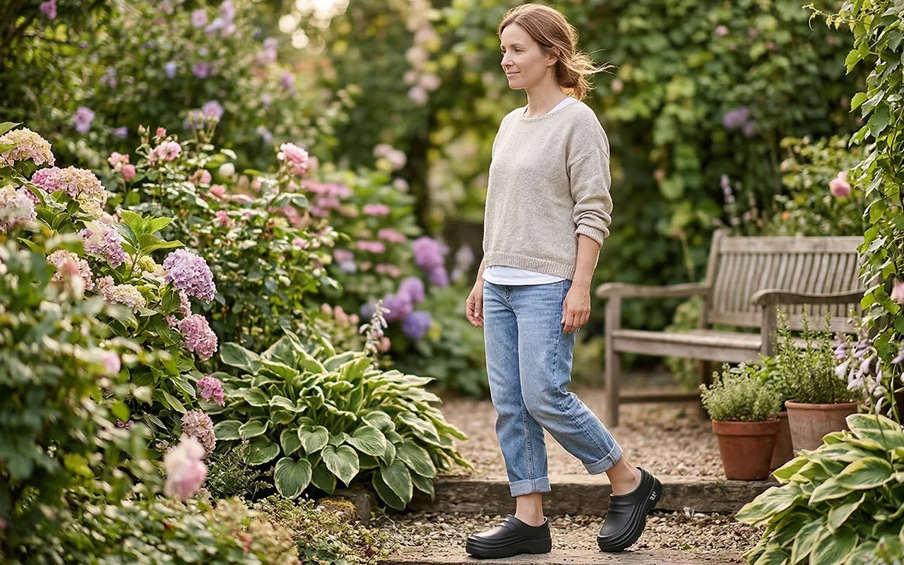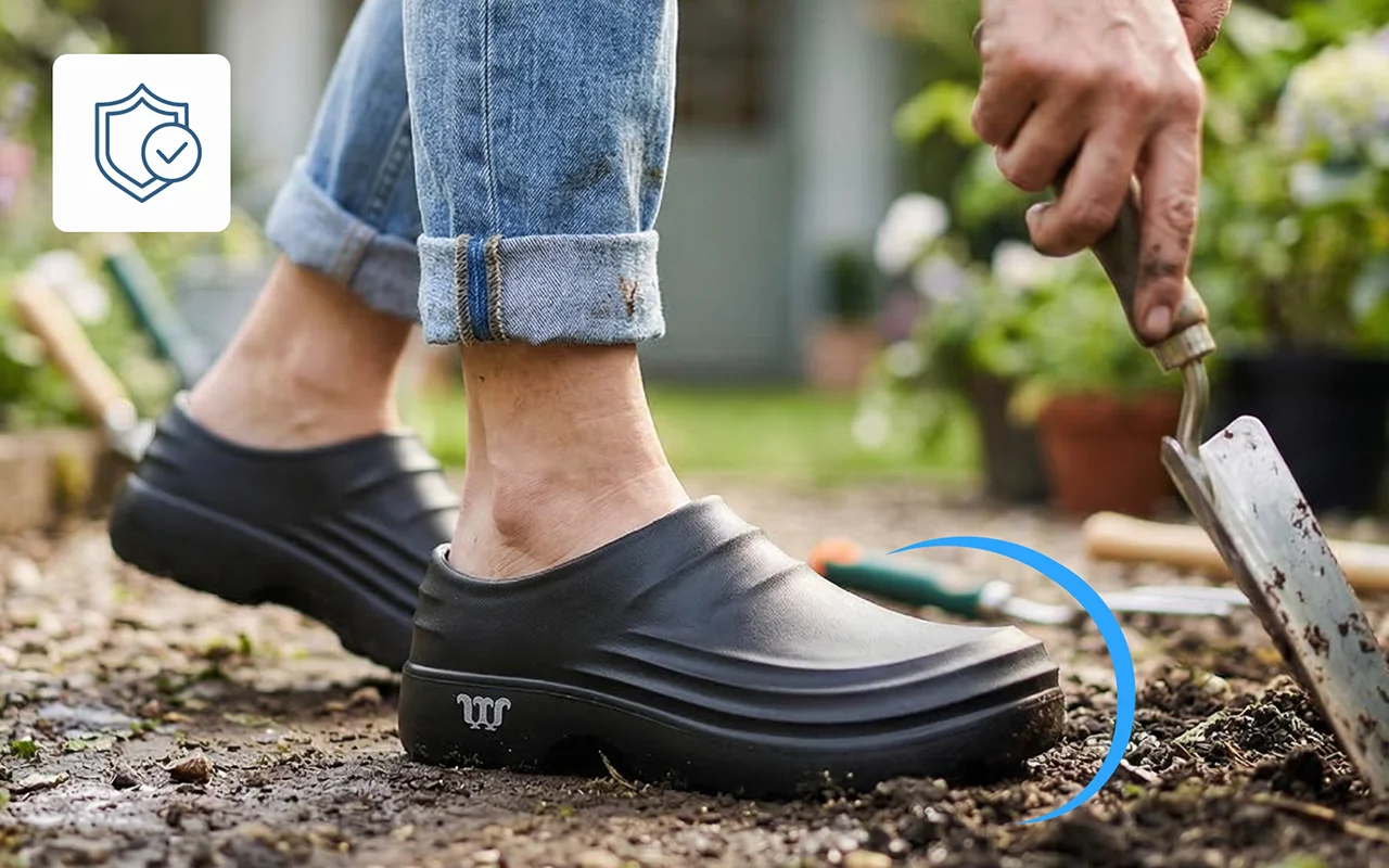 بعد يوم طويل من سقي النباتات وتنظيف الفناء، قدماي عادةً تصرخ ألماً. مع هذه القباقيب، أنهي الأعمال دون ألم ودون انزلاق على الحجر المبلل.