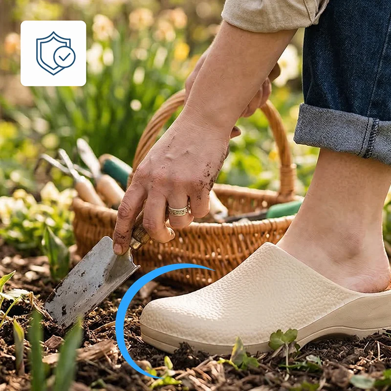 تصميم داعم يخفف الضغط عن الأقواس المرهَقة. البطانة الناعمة تقلل الألم لتتمكن من الوقوف لفترة أطول في الحديقة أو أثناء العمل.