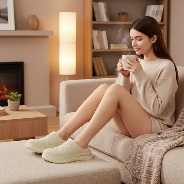 بطانة الفرو تحتفظ بالحرارة فلا تشعر أصابع القدم بالبرد أبدًا. استمتع بلحظات الاسترخاء في المنزل بدون تيارات هواء باردة.