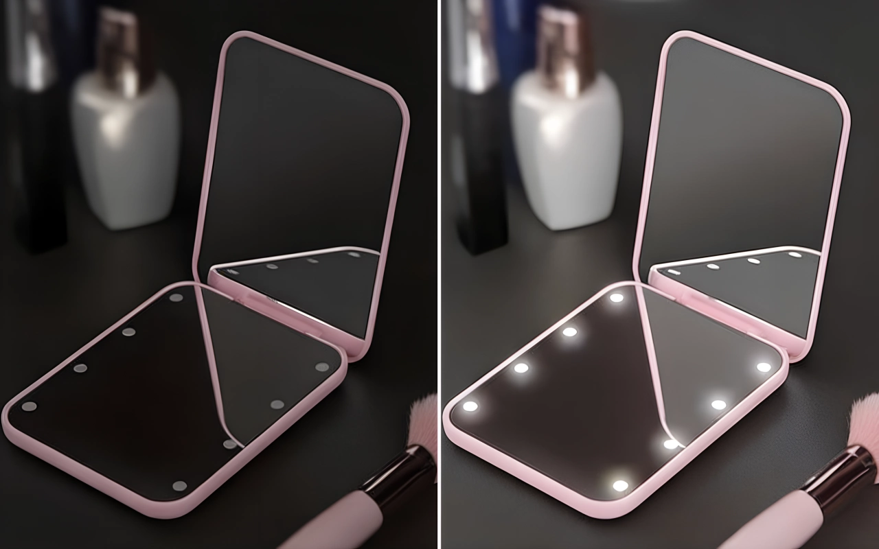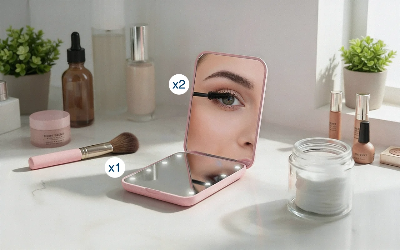 تضيء أضواء LED بقوة، مما يسهل وضع مستحضرات التجميل. تتحسن الرؤية حتى في الأماكن المظلمة لتحقيق دقة عالية.