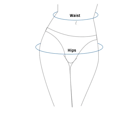 - 2. لفي شريط القياس حول أنحف جزء من خصرك وأعرض جزء من الوركين.