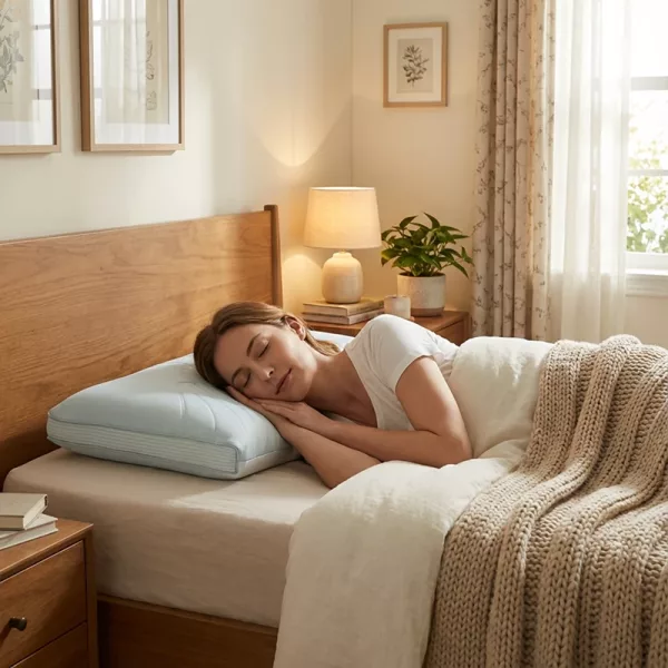 أتحرك كثيرًا أثناء الليل وأبدّل الجوانب باستمرار. شكل الوسادة يلتقط رأسي أينما أستقر، والغطاء البارد يمنع تراكم العرق.