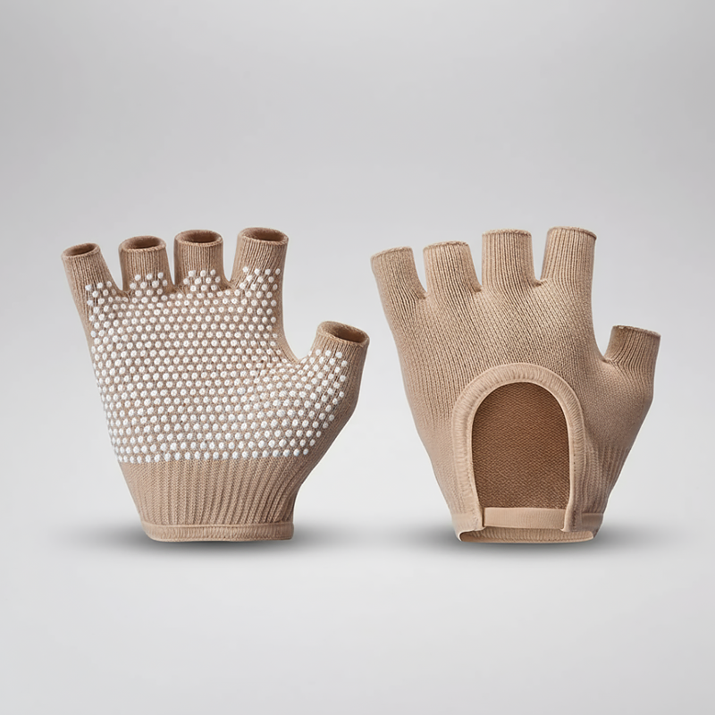 ارتداء هذه القفازات أثناء تمارين البيلاتس يجعل يدي مرتاحة. أصبح لدي توازن أفضل وراحتي يدي لا تلتصق بعد الآن.