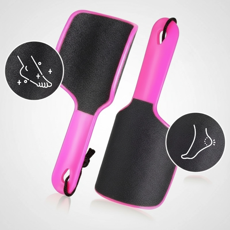 مقشّر القدم الخاص بنا يوفر عناية شخصية وفعّالة للقدمين. أحد الجانبين يزيل التراكم السميك بسرعة بينما الآخر يلمّع ليمنحك نعومة مثالية.