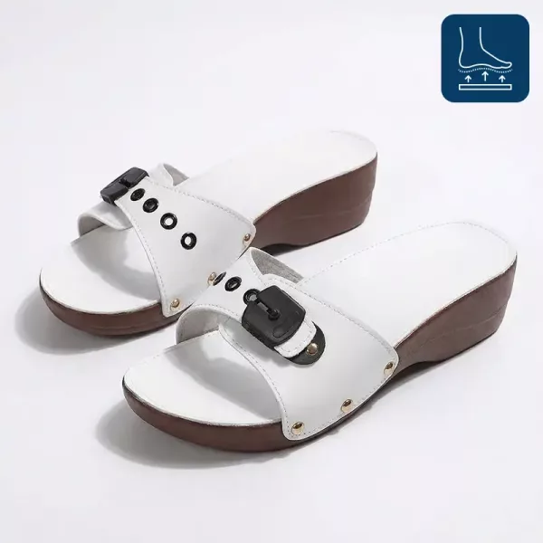 اشعري بالخفة في قدميك خلال الأيام المشمسة في الخارج. استمتعي بالثقة مع علمك أن حذاءك يبدو دائماً جميلاً وأنيقاً. صندل أورتوريكس بالكعب المائل يتماشى بسهولة مع كل إطلالات الطقس الدافئ. ارتديه بسرعة وابقَي مرتاحة طوال اليوم.