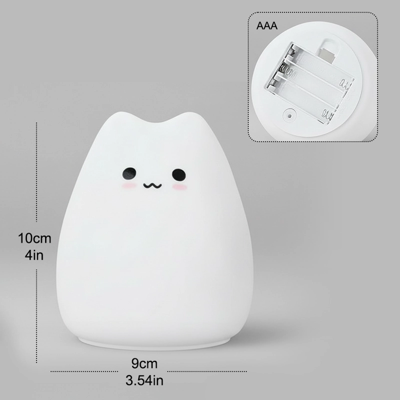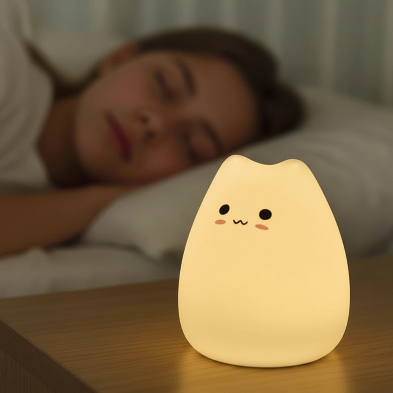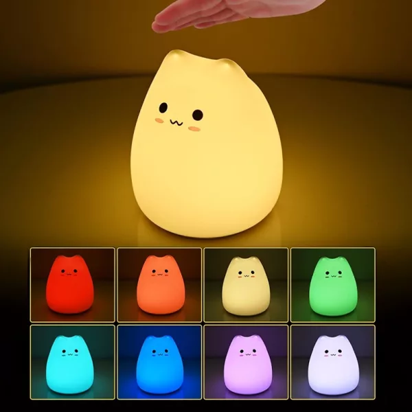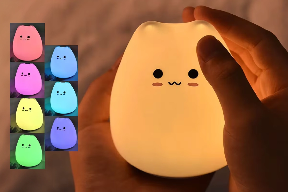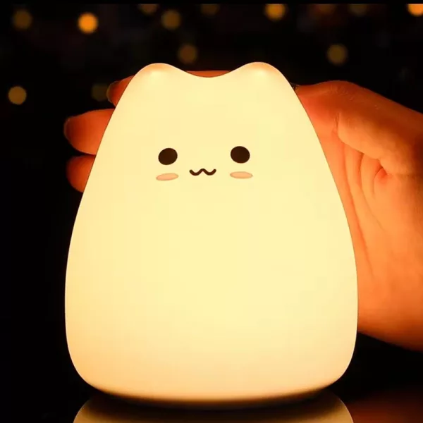 اشتريت هذا المصباح اللطيف على شكل قطة لابنتي. تلمسه بنفسها وقت النوم، تختار لونًا، وتستقر للنوم بشكل أسرع الآن.