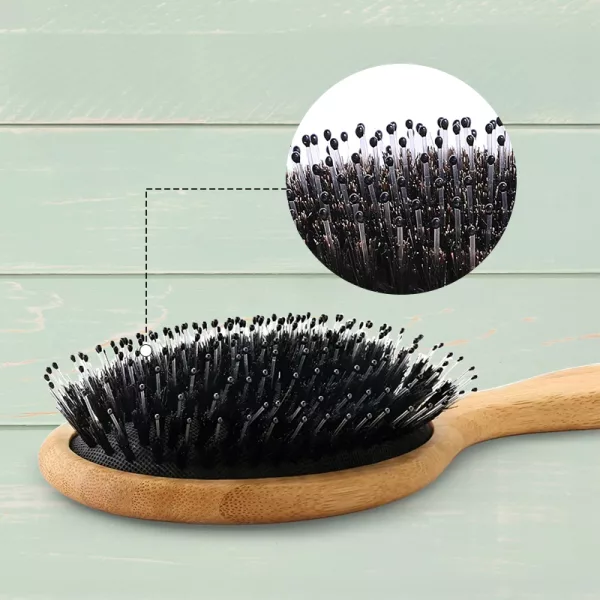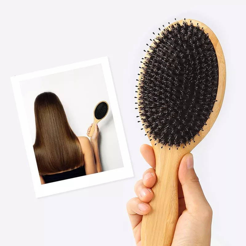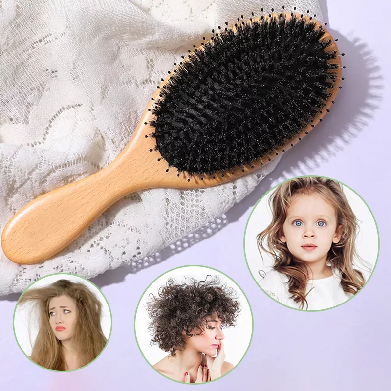 شعيرات الخنزير توزع الزيوت بشكل متساوي من الجذور إلى الأطراف. هذا يساعد الشعر على البقاء ناعماً، لامعاً وأقل عرضة للتقصف.