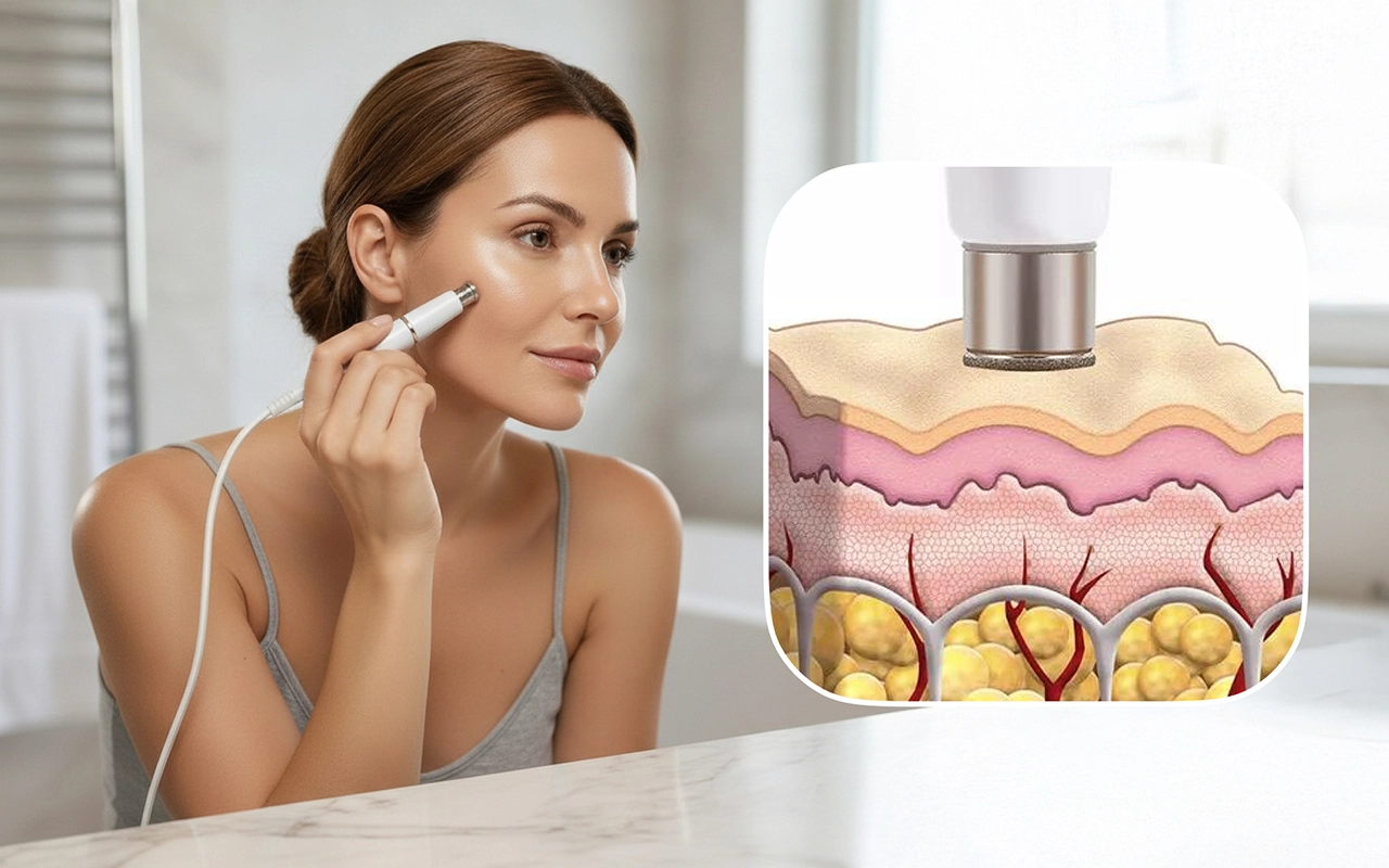 بضع دقائق فقط مع الجهاز، وأصبح وجهي أكثر تناسقًا. لا ألم ولا احمرار، فقط إحساس بالنظافة التامة.
