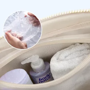 الأشياء المبللة لا تفسد باقي الممتلكات داخل الحقيبة. البطانة الخاصة تمنع التسربات، وتحافظ على أغراضك جافة تمامًا.