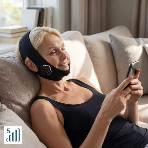 استخدمت شريط الذقن كل مساء أثناء مشاهدة التلفاز، ووجهي أصبح أقل انتفاخًا. أحب الإحساس المريح للسيليكون وهو يلتف حولي.