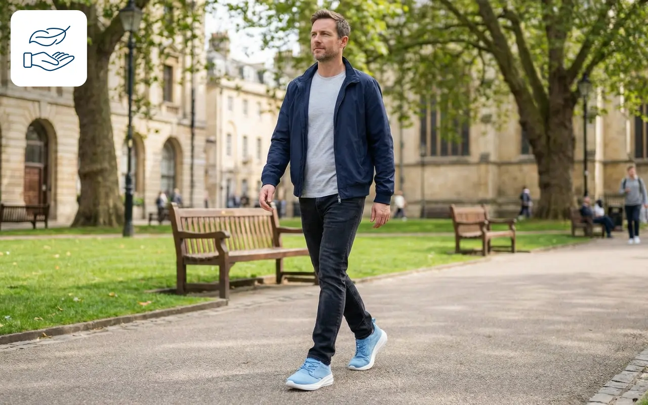تحرك بشكل طبيعي مع دعم على أي سطح. الإحساس الخفيف يحافظ على خطوات نشيطة وخالية من الألم.