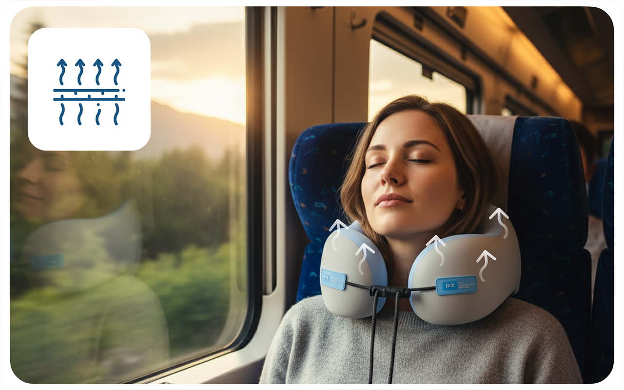 غالباً ما تسبب الرحلات الطويلة آلام الكتفين، وتصلب الظهر، وإرهاق العقل. وسادة أورتوريكس تحتضن رأسك بلطف وتدعم وضعية جسمك. كل رحلة تصبح أقصر وأكثر متعة للجميع. استرخِ بسهولة، وكن مطمئناً أن الراحة والصحة دائماً في متناول يدك.