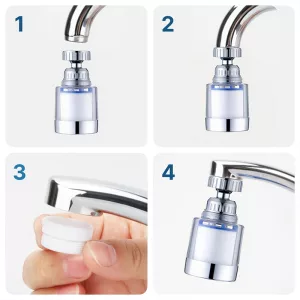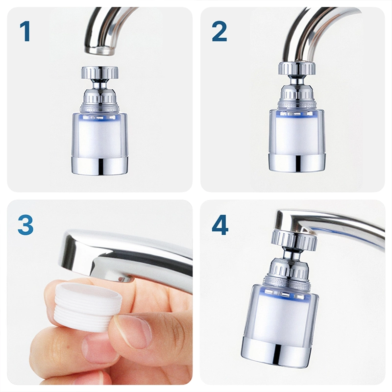 تدوير ناعم 360 درجة للوصول إلى كل زاوية. نظف الصحون واليدين والأحواض دون أي رذاذ مزعج.