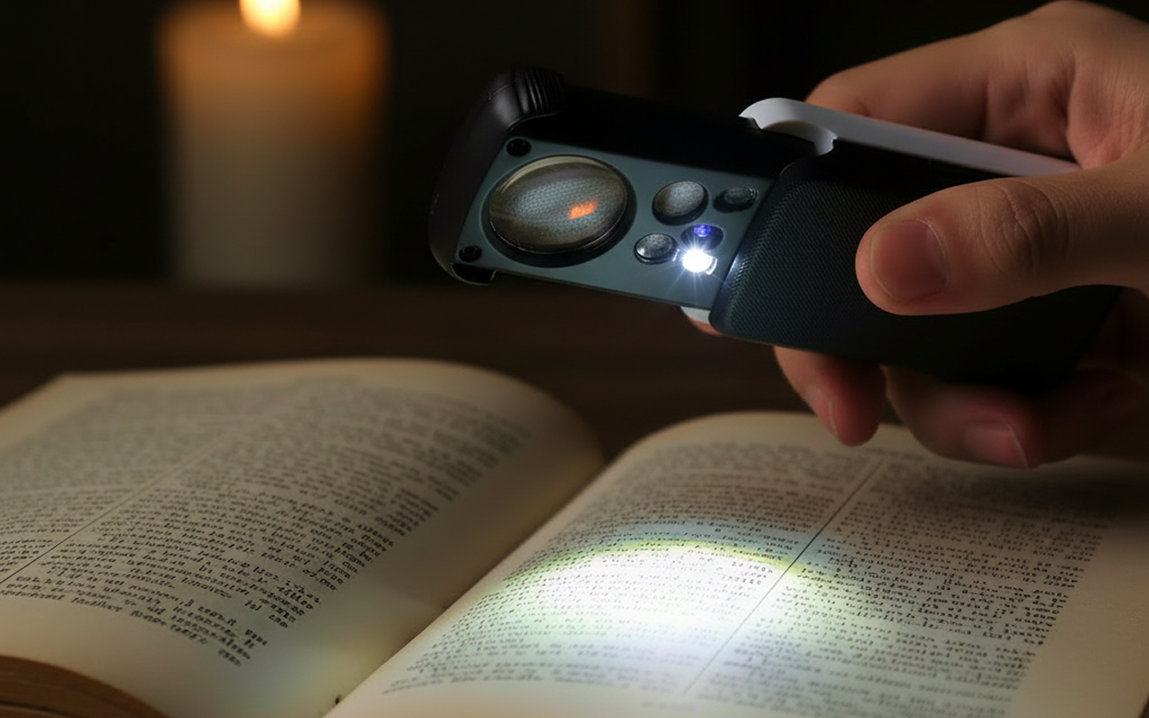 أحتفظ بهذه العدسة القابلة للطي في حقيبتي من أجل قوائم الطعام والإيصالات. مصباح الـ LED يجعل المطاعم الخافتة الإضاءة أسهل بكثير، ولا أشعر بأي ثقل في يدي.