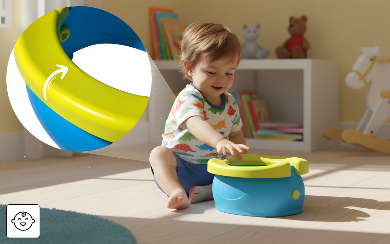 الألوان الزاهية والحواف الناعمة تساعد الأطفال على الشعور بالأمان. تصبح أوقات استخدام المرحاض أقل توتراً للصغار.