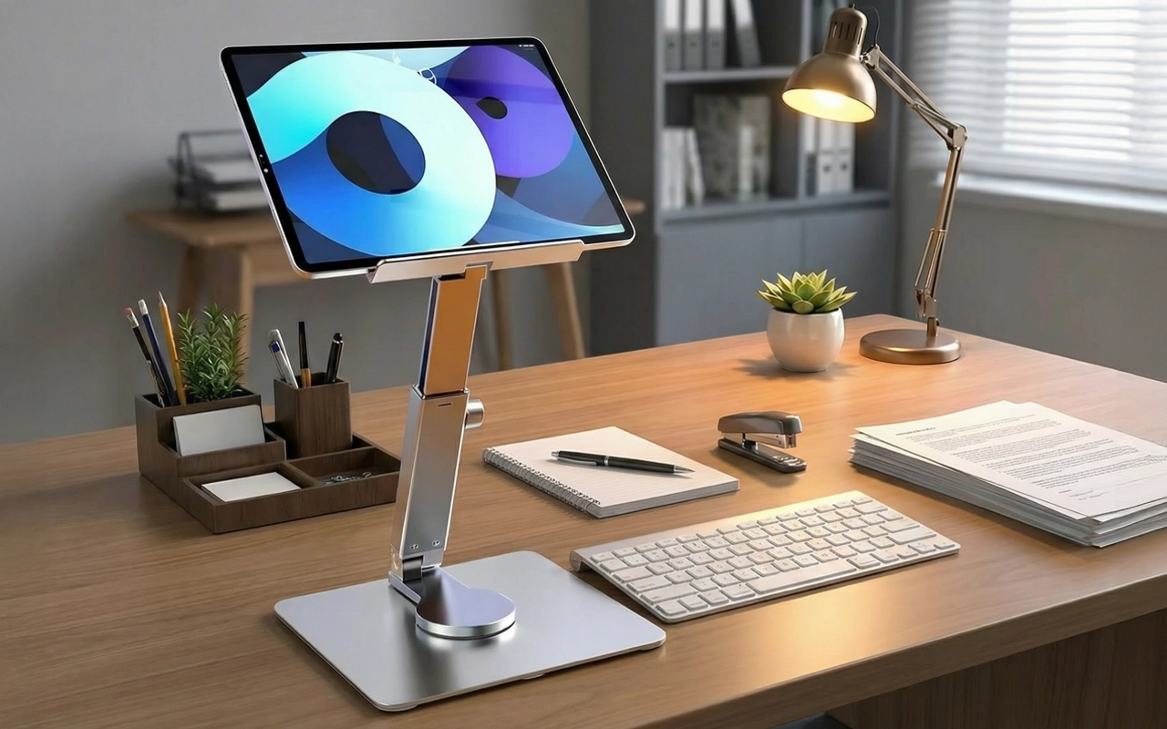 وداعاً للفوضى على المكتب! هذا الحامل يرفع جهازي اللوحي ويجعل لدي مساحة أكبر للكتب والوجبات الخفيفة.