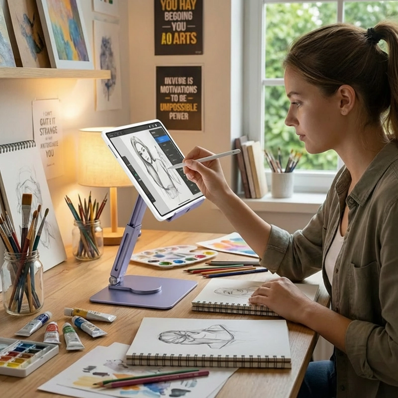اختبر الراحة كل يوم مع حامل التابلت من أورتوركس. آلام الرقبة والمكاتب الفوضوية تصبح من الماضي فورًا. حافظ على ثبات جهازك أثناء الرسم أو اللعب أو مشاهدة الأفلام.